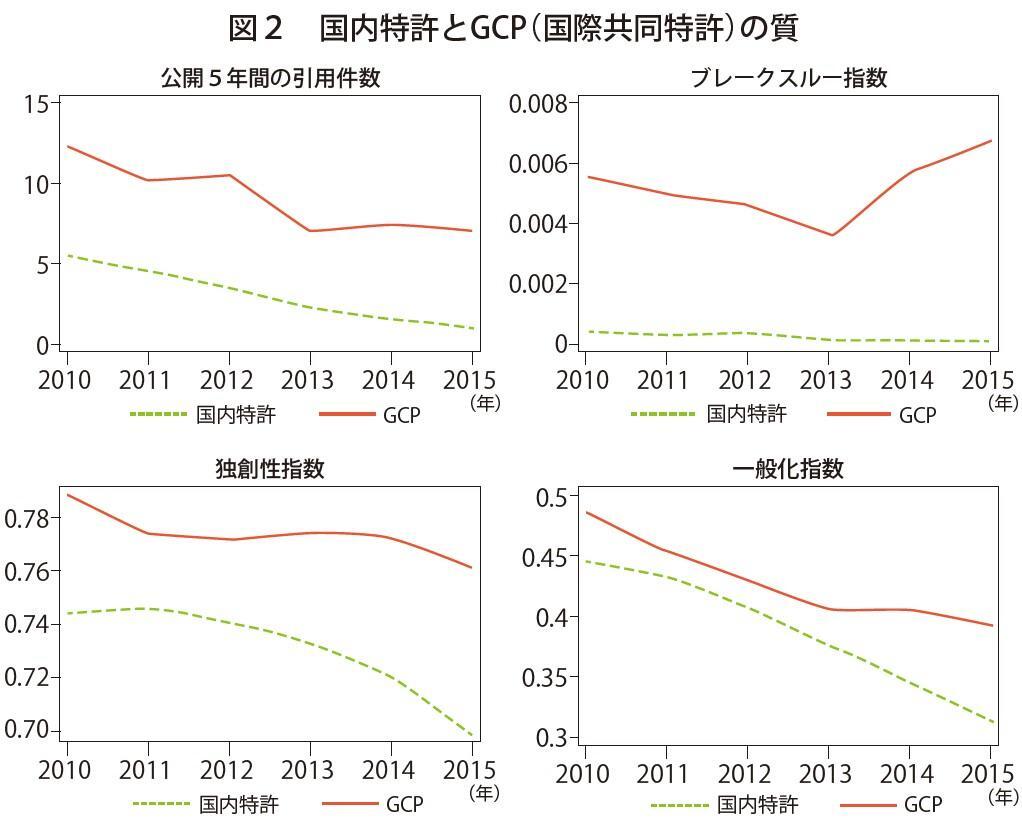 つまり、日本の場合、グローバルな研究開発活動の成果の一つといえる質の高い特許(GCP)の割合が米国やドイツより大幅に低くなっていることが、特許全体の品質で米独に後れを取る要因の一つにもなっているのだ。