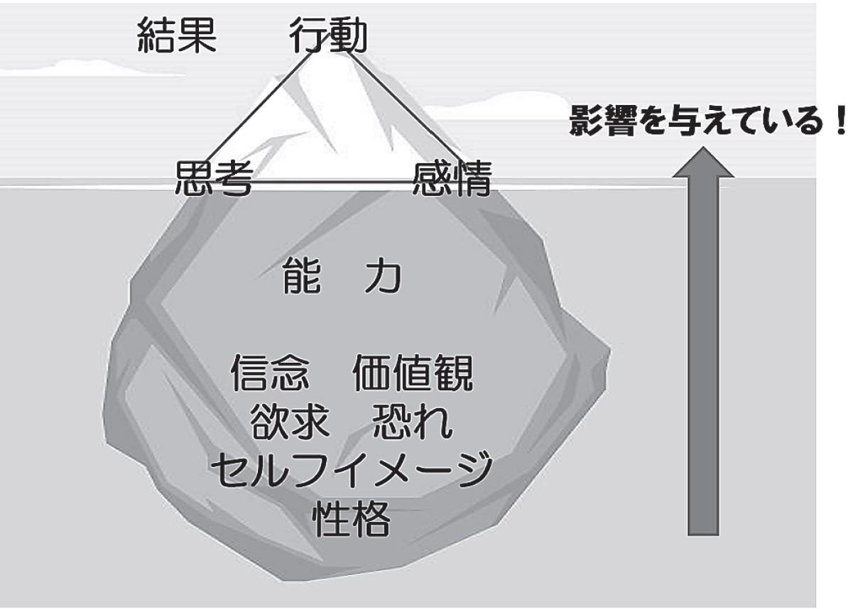 次に、氷山モデルの思考や感情に影響を与える要素とはどのようなものか、さらに深いレベルまで掘り下げてみよう。まずは自分の実力に対する自信の程度。本当に実力があるかどうかは別にして「まぁ、なんとかなるだろう」と考えられる人ほど困難な仕事を前にしても前向きな感情を抱きやすい。あるいは根源的な恐れ。愛想よくしていないと、相手の期待を裏切らないようにしないと、才能豊かでないと、自分を受け入れてもらえないといった無意識に近い恐れを人は抱いている。それができそうにないと直感的に感じるとき不安が頭をもたげ、思考がやらない理由を合理的に取り繕おうとする。これらのメカニズムに気づき、新しい反応のパターンを獲得することこそが人が成長することの本質だ。