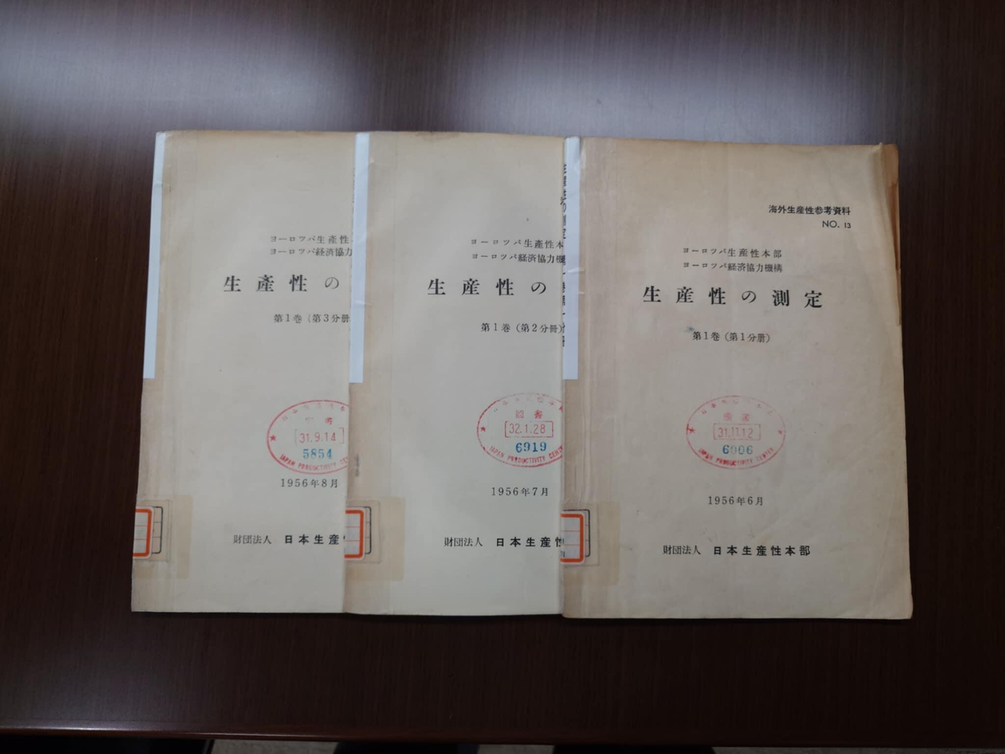 「生産性の測定」第1巻56年6月から8月にかけて三分冊で発行された。冒頭、「海外生産性参考資料発行に当つて」で、日本生産性本部企画部は「わが国における生産性向上運動の発展にともなつて、最近その理論的基礎づけが緊急の課題となつてきた。しかし特に専門的な分野にわたる理論的研究となるときわめて乏しい実情にある。当本部は、この欠を幾分でもおぎなうため社会主義国をふくむ海外諸国の生産性にかんする専門文献を翻訳、活版による刊行物とは別個に、逐次刊行することにした」と記した。